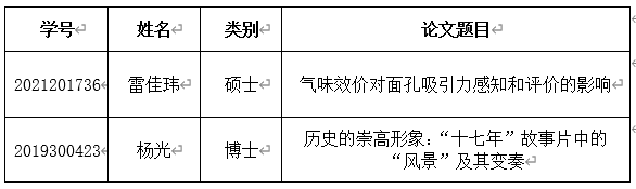 人文学位评定分委会2024年研究生优秀学位论文推荐名单公示