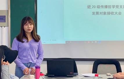 研2020级传播哲学党支部于X8310室召开了预备党员接收大会及专题学习会议。本次会议主要分为两部分,第一部分为预备党员接收大会,由支部书记周桎宏同志主持。第二部分为党支部专题学习会议,由杨谨瑜同志主持。支部全体党员及两名发展对象参加了此次会议。