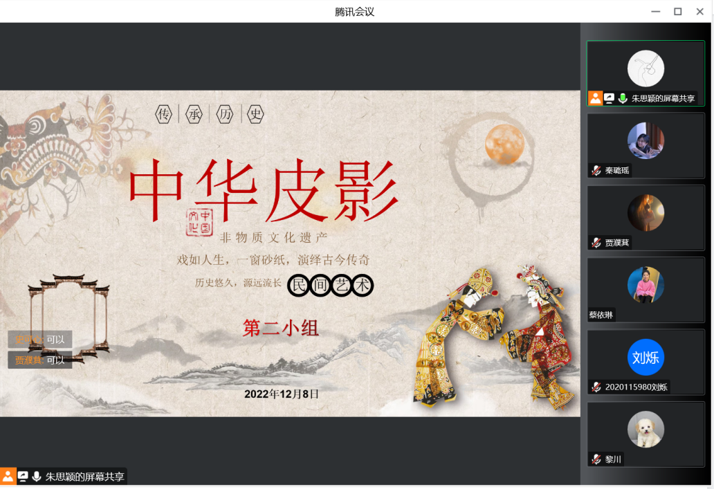 习近平总书记在党的二十大报告中提到,要不断加大文物和文化遗产的保护力度,坚守中华文化立场,提炼展示中华文明的精神标识和文化精髓。为了更好地领会习近平总书记的重要讲话,从精神层面认同非物质文化遗产,寻找我们民族赖以生存的精神之根,本科汉语党支部于2022年12月8日下午15:50分,在线上开展了支部特色活动之家乡非遗文化专题学习分享。本次活动有两项安排:一是贾濮萁同志领学,向大家介绍非物质文化遗产的概念及特点,二是由支部成员轮流分享,结合家乡特色进行展示。爱看影视