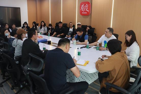 随后,双方在会议室展开了座谈交流,李程主任就成都广播电视台新媒体中心的基本情况、组织架构、运作流程、发展现状等方面进行了补充介绍,让调研小组对成都广播电视台新媒体中心及看度新闻的发展有了更深入的认识。期间,双方就看度新闻的特色和推广策略、新媒体中心的数据分析、可视化流程、人才技能等问题展开了互动交流。座谈中,蒋宁平教授也介绍了爱看影视