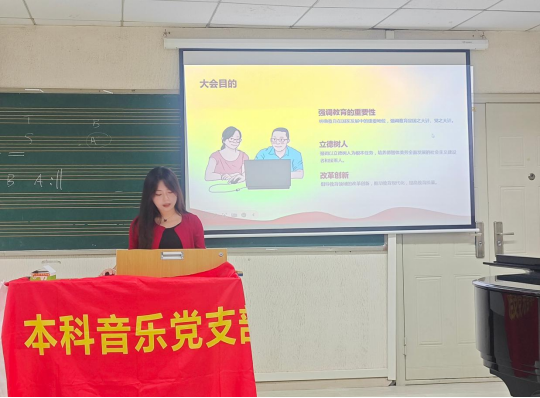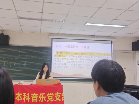 本科音乐党支部于2024年10月17日下午13:00,在音乐系音专一教室开展主题党日活动,会议由沈芸、奉东升、晏小宇等同志领学,本科音乐党支部全体成员参加学习。本次活动包括五个主题:一、学习习近平总书记在全国教育大会上的讲话内容;二、研读习近平总书记在国家勋章和国家荣誉称号颁授仪式上的讲话;三、学习《大力弘扬伟大爱国主义精神,把强国建设、民族复兴伟业不断推向前进》重要文章;四、学习习近平同志《论教育》节选:《加快构建中国特色哲学社会科学》;五、学习《中国共产党不合格党员组织处置办法》。