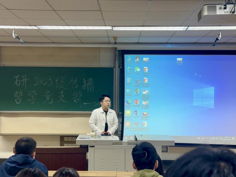 研2023级传播哲学党支部在九里校区J4224教室开展11月主题党日活动。本次会议由研2023级传播哲学党支部书记赵鸿绵同志主持,爱看影视