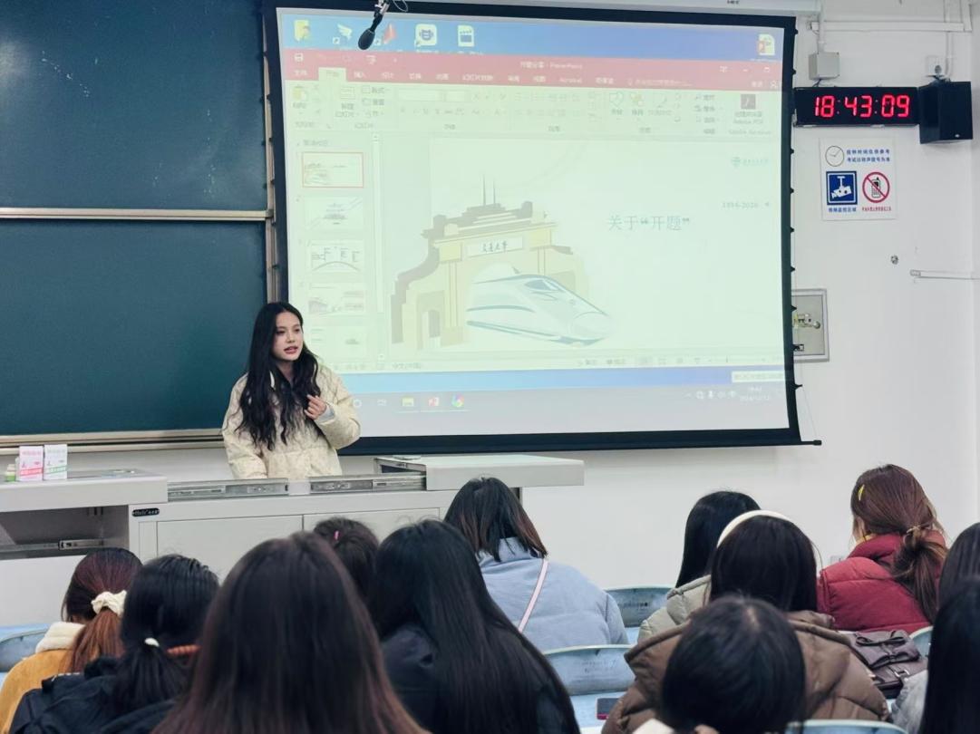 活动尾声,研2023级王梦然同志立足个人经历,为在座同志带来一场极具智慧与启迪的学术经验交流,围绕毕业论文选题、文献阅读、学习方法、时间管理、目标设定等方面分享深刻见解,着重指出制定合理学习计划对学习的重要性,倡导以科学规划时间实现高效学习。在互动环节,2024级研究生积极向学长学姐提问,2023级研究生耐心解答,现场氛围热烈和谐,为同学们在学术研究及学习生活提供了宝贵参考。