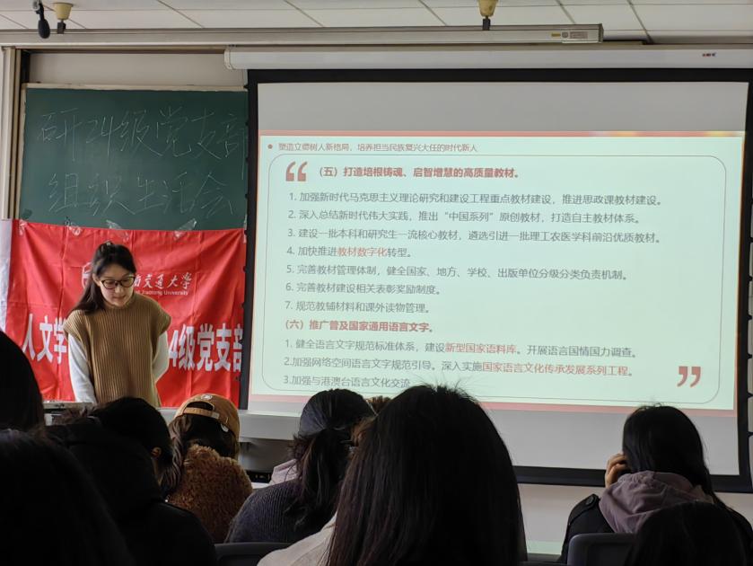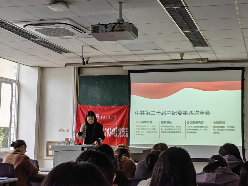 研2024级党支部于九里校区J4222教室开展3月主题党日活动。此次活动由李欣睿同志主持,支部全体成员到会学习。