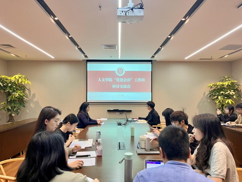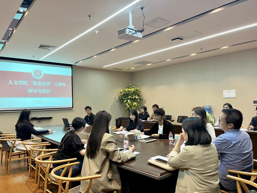 接下来,各支部围绕“‘1+1’联学联建、共学共建行动”“主讲主问主答模式”“党建品牌与‘一融双高’建设”三大主题依次进行了研讨交流。本科汉语党支部刘晗悦同志提出跨学院、跨学科联动、扩大党建辐射范围的创新设想;博士党支部刘爽同志结合“三下乡”社会实践,提出了博士生、本科生组团共建的党建思路。