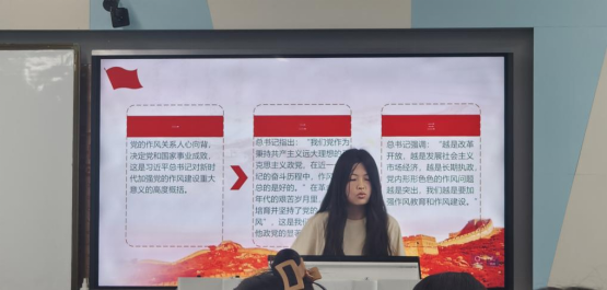 此外,黄思瑜同学带领了大家学习了《以作风建设新成效开创高质量发展新局面》和《精心谋划求实效 凝心聚力树新风》两篇重要文章,引导全体成员深入理解党推进作风建设的坚定决心。最后,罗文彬同学带领大家持续跟进学习了习近平总书记近期重要讲话精神,以及习近平总书记关于文化强国、科技创新等方面的论述,让全体同志进一步明确了作为新时代党员的责任与担当。