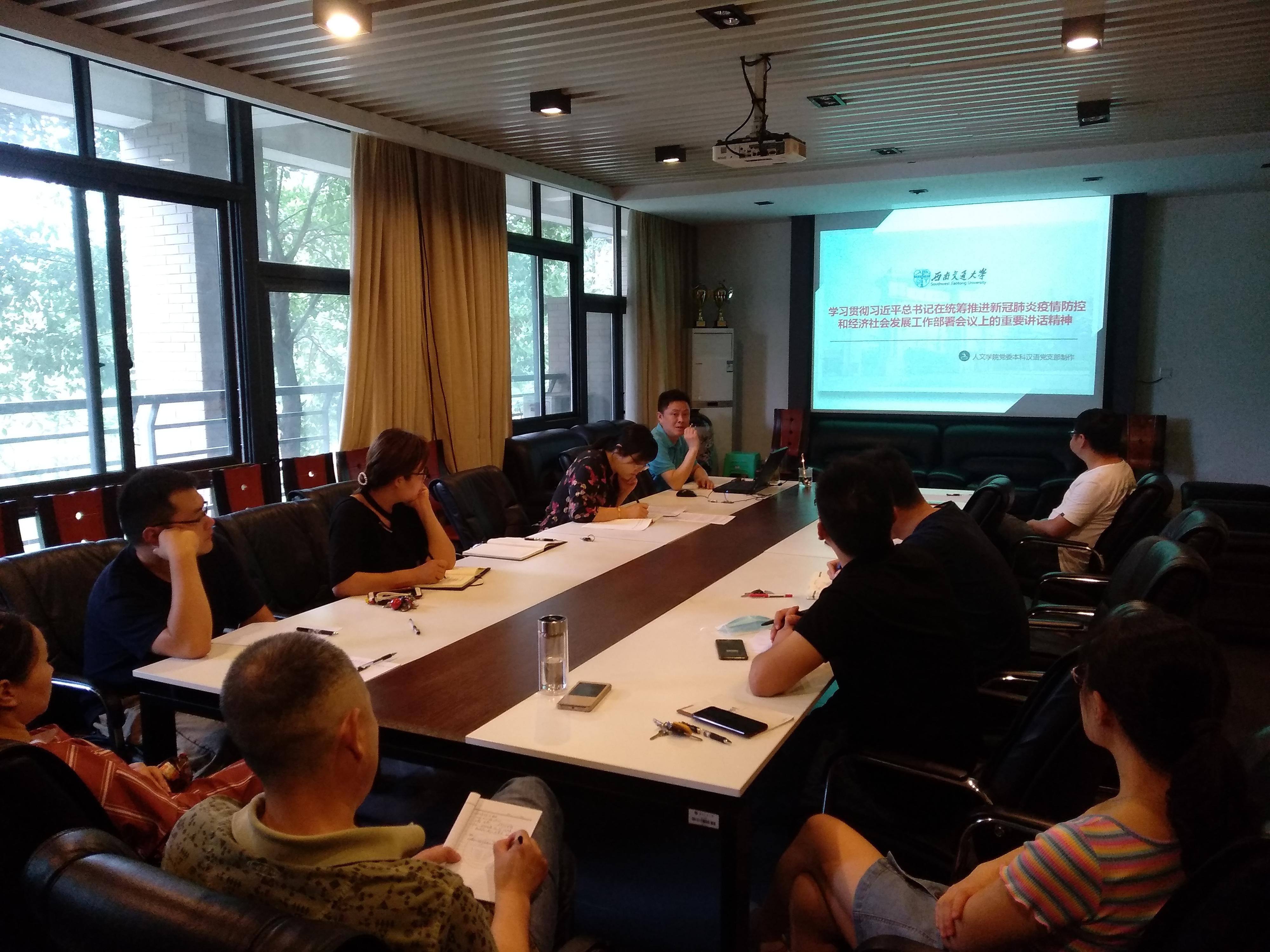 学院党委书记向仲敏为支部成员专题讲解了《学习贯彻习近平总书记在统筹推荐新冠肺炎疫情防控和经济发展工作部署会议上的重要讲话精神》。向仲敏书记带领大家一起回顾了前一段疫情防控工作的部署策略,当下疫情防控工作中的经济社会发展工作,以及加强党对疫情防控和经济发展的坚强领导。号召全体党员要结合自身学习工作,践行习近平总书记提出的狠抓落实、增强忧患意识,提高工作本领。