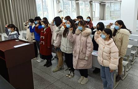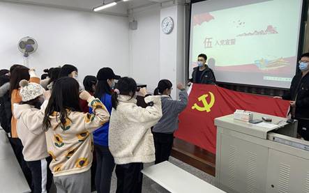 全体支部党员对各位新加入党组织的预备党员表示了热烈欢迎。在党支部副书记王岚同志的领誓下,十三位预备党员持立正姿势,举右手、握实拳,面向中国共产党党旗郑重宣誓。宣誓后,刘晗悦同志说道:“为预备党员召开入党宣誓仪式能够增强党员的党性修养,号召其向党表示自我的坚决意志。总之,入党宣誓一生只有唯一一次,但入党誓词必须永远铭记于心。仪式简练而短暂,意义深远而长久。”大会最后,支部书记刘晗悦同志寄语各位预备党员成为支部建设的主干和新鲜血液,推动支部继续向前发展。(通讯员:王岚)