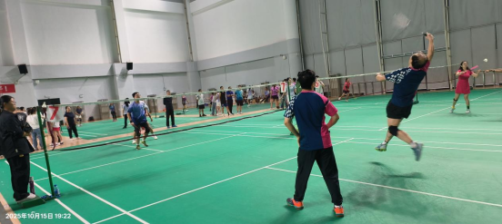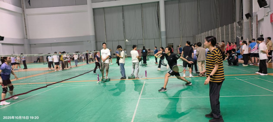 比赛以团体进行,分别采用单打、双打和混双的形式进行。赛场上,老师们精神抖擞、斗志昂扬,每一次挥拍、每一球争夺都彰显着顽强的拼搏精神。经过老师们的努力,人文羽毛球在首轮以小组第二的身份出线。