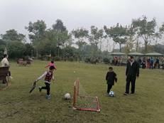 大家乘车来到风景秀美的江安绿道,一路清风吹拂,满载欢声笑语,那些往日阴雨带来的烦闷一扫而光。老师们一下车,就纷纷领取工会精心准备的各种体育器材,来到运动场一展身手,羽毛球、足球、乒乓球、跳绳……,大家尽情投入到运动的快乐之中。小朋友们也不甘示弱,除了跟叔叔阿姨们同场竞技外,还兴致勃勃地参加了户外素质拓展活动,走索桥、荡秋千、爬云梯,大汗淋漓,欢乐无限。
