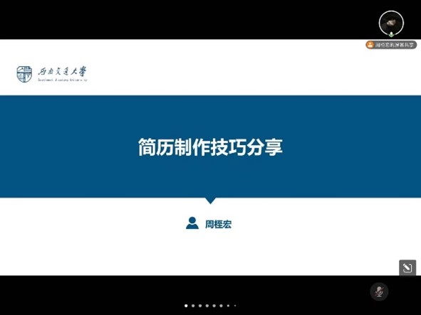 随后周桎宏老师向大家分享了简历制作技巧。他首先点明了简历撰写的三个原则:清晰明了、真实可信及因地制宜。接下来从个人信息、教育背景、实践经历、项目经历、岗位技能及获奖情况六个方面向大家讲述简历内容该如何写。其中,在实践经历这一部分,周老师提出用“爽文思维”来写简历,“思维不应该是‘在这里我要负责做什么’,而是‘我做了哪些能体现我个人能力和想法的事情’,一句具体的逆境,一句有策略的努力再加上一句可量化的逆袭。”周老师说道。