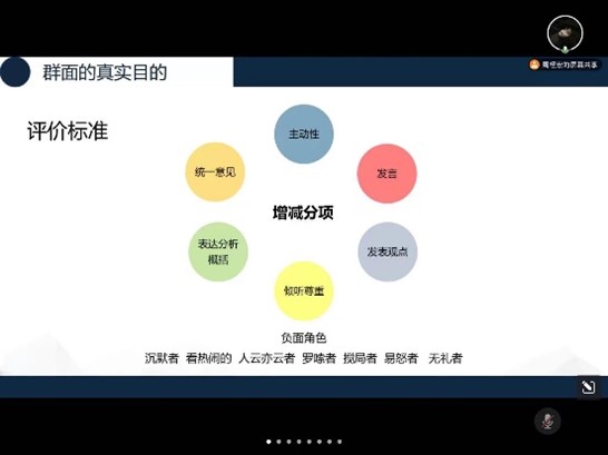 接下来周桎宏老师又向大家详细介绍有关校招面试的内容。校园招聘的目的是为企业招募和储备应对未来挑战的人才。他从工作热情、可塑性强、人才迭代及忠诚度高陈述了校招员工的4个独有优势,随后着重介绍了校招的常规流程来帮助大家更加熟悉校招。在这之后,周老师还讲到了群面的特点及表现技巧。他认为如果在群面中大家能够做到口头表达清晰、解决问题思路清楚角度新颖、善于倾听他人意见及遇到冲突保持冷静等方面,就能够在群面中脱颖而出,给面试官留下好印象。周老师说:“群面的潜在评价标准即主动性、发言、表达观点、倾听尊重、表达分析概括及统一意见6个方面。”而关于HR面,他认为“成功的面试,一定是一次愉快的沟通。”通过介绍面试官的惯用套路,来帮助大家更好地完成面试。