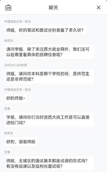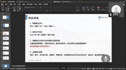 最后,同学们在线上提出就业相关问题,进行现场答疑。例如张莉沅同学关注到就业渠道与信息获取问题;王蓉询问师姐具体的面试形式;张元和余泞佳都提及到笔试和面试的准备问题,卢琴老师同样也针对一些问题进行了解答。总而言之本次“青春大讲堂——朋辈分享”主题活动圆满成功,薛佳、郝欢欢、肖俊怡三位优秀毕业生与大家积极交流求职经验,使同学们受益颇丰。