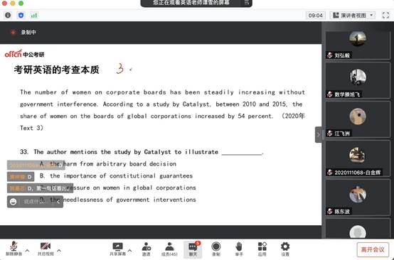第一场活动为23考研国庆训练营,训练营于10月1日到10月3日开展,特邀中公教育梁萧老师与谭雪老师主讲,采取线上+线下相结合的方式进行。梁萧老师主讲考研政治的主观题解题思维,梁老师基于2010-2022年真题,分析命题趋势,讲解解体思维,说明答题要点。谭雪老师主讲考研英语的阅读与写作部分,重点讲授英语答题技巧。同学们认真听讲,纷纷表示收获满满。