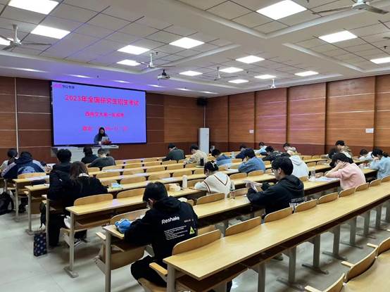 第二场活动为23考研模考,10月6日到10月7日,考研第一轮模考在犀浦校区四食堂三楼319教室举行,模考内容包含三门学科,即政治、英语、数学。同学们积极参与模考,感受做题节奏,把握考场时间分配,积累了考试经验。