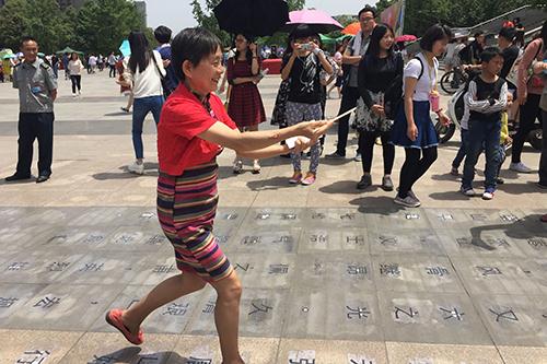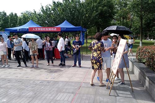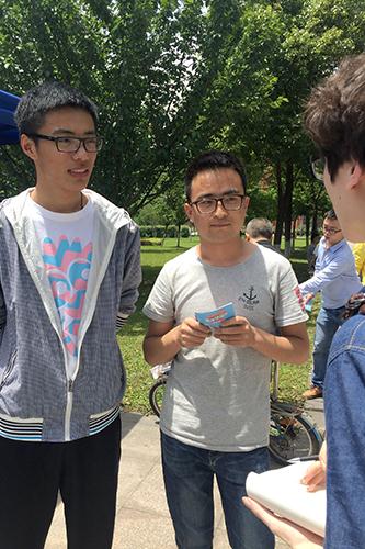 的游戏点周围形成一堵厚厚的人墙。在报名的人群中,有三位不同寻常的选手——三位老奶奶,其中一位已经白发苍苍。她们与身强力壮的男同学们一起参与比赛,虽然最终落败,但是脸上仍挂着笑容。原来,她们三位都是曾在交大任职、现已退休的老师。其中一位曾任职于电子学院的老师说,和年轻人一起比赛一起玩耍时很快乐,让她觉得自己也年轻了。她还表示,在这样一个特殊的日子回到曾经任职过的学校里,她觉得很亲切,“真的有一种回家的感觉!”她笑着说,并送出了对母校的寄语:“希望学校越办越好,培养出越来越多的高素质人才。”