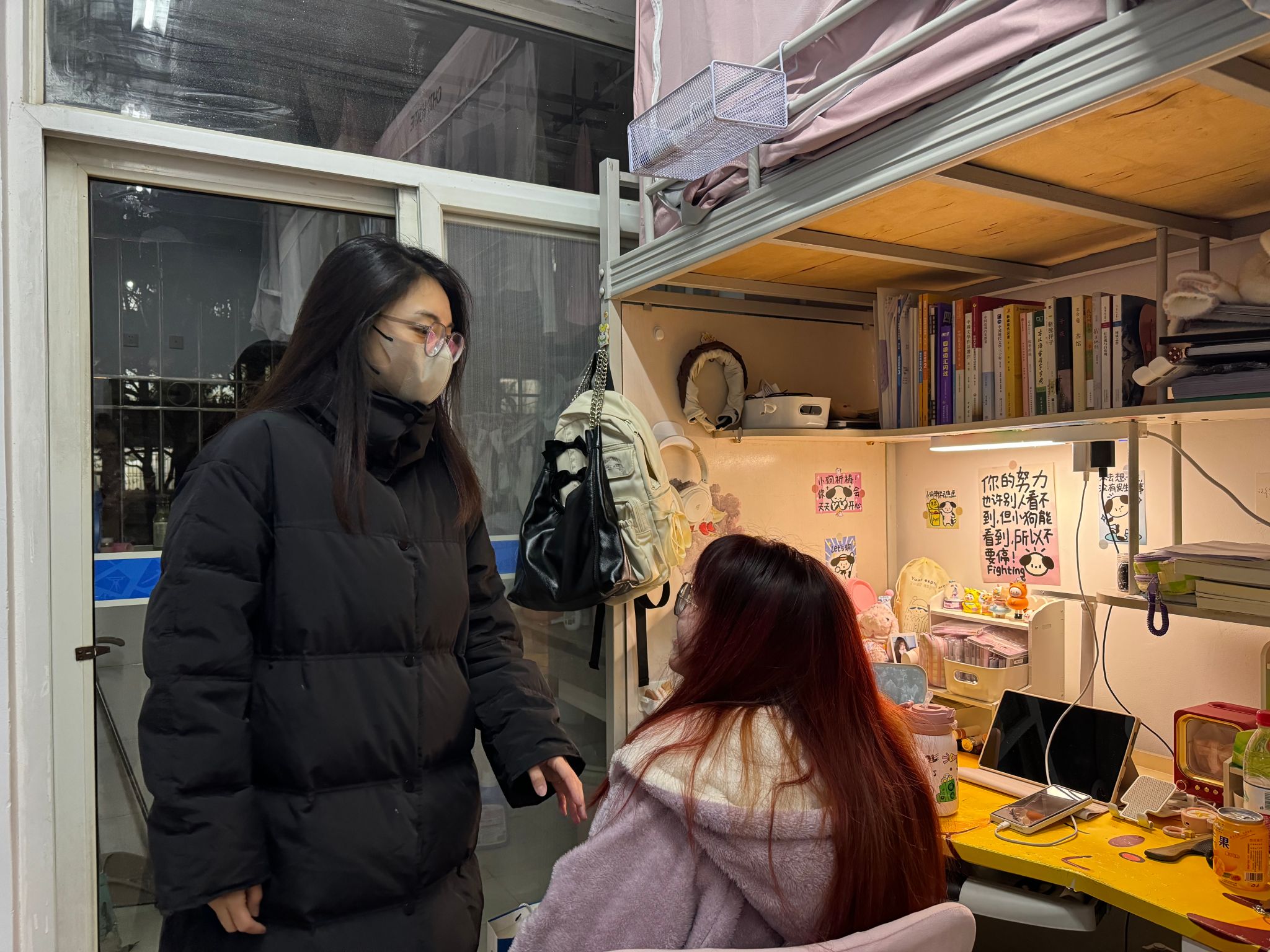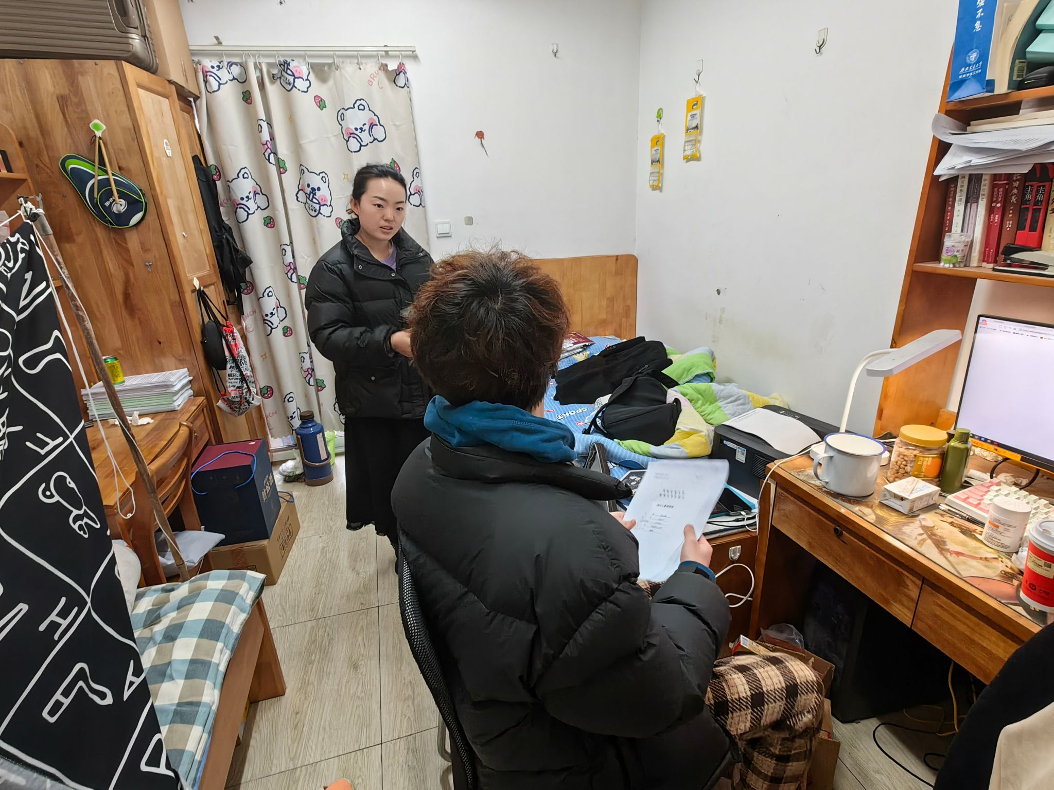 卢琴老师前往犀浦校区研究生宿舍进行走访,关心慰问了学生们的寒假生活并询问学生的毕业论文和实习就业情况,提醒大家做好本学期时间规划。万心怡老师深入九里校区研究生宿舍了解学生的寒假生活与实习情况,并提醒大家尽快调整好状态回归新学期的学习生活。