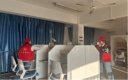 青年志愿者协会的带领下,在天佑斋二十栋自习室完成了清扫整理工作。为了营造更好的自习氛围,志愿者们分工明确,相互协作,清理自习室地面垃圾,摆放桌面上的书籍,擦拭书柜上的灰尘等,大家齐心协力对自习室进行了彻底的打扫。