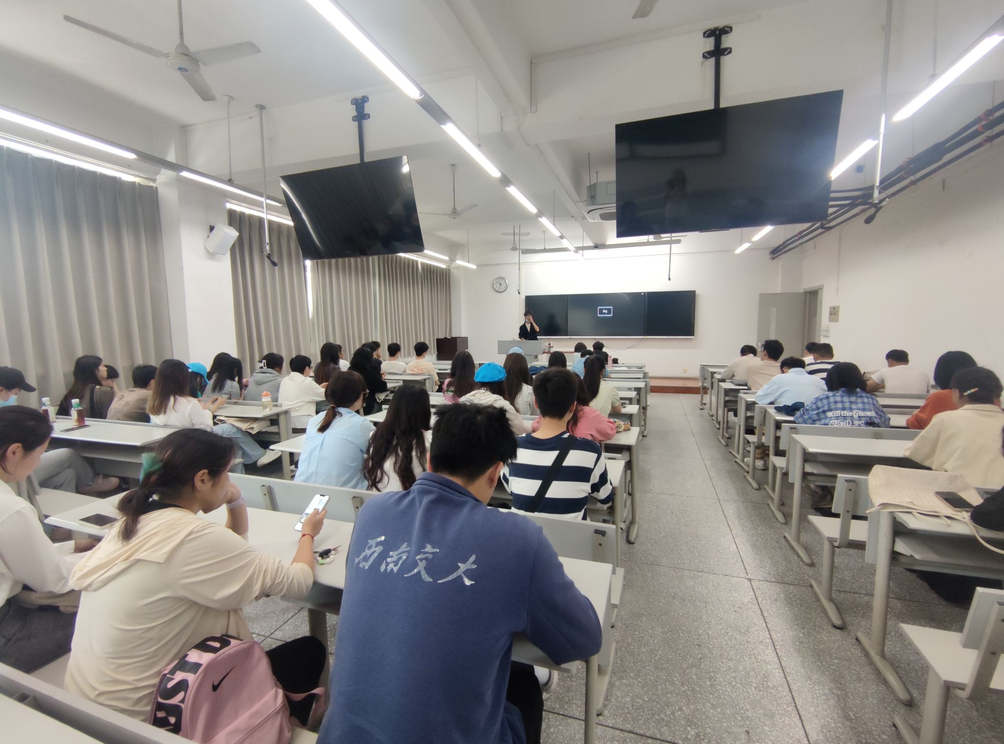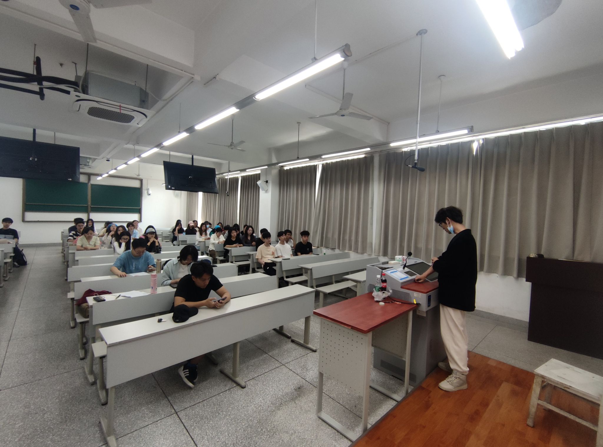 最后,刘爽老师还像同学们介绍了一直到毕业阶段会面临的各项事务性工作,提醒同学们按照学校要求完成毕业设计,注意遵守校纪校规和安全问题。