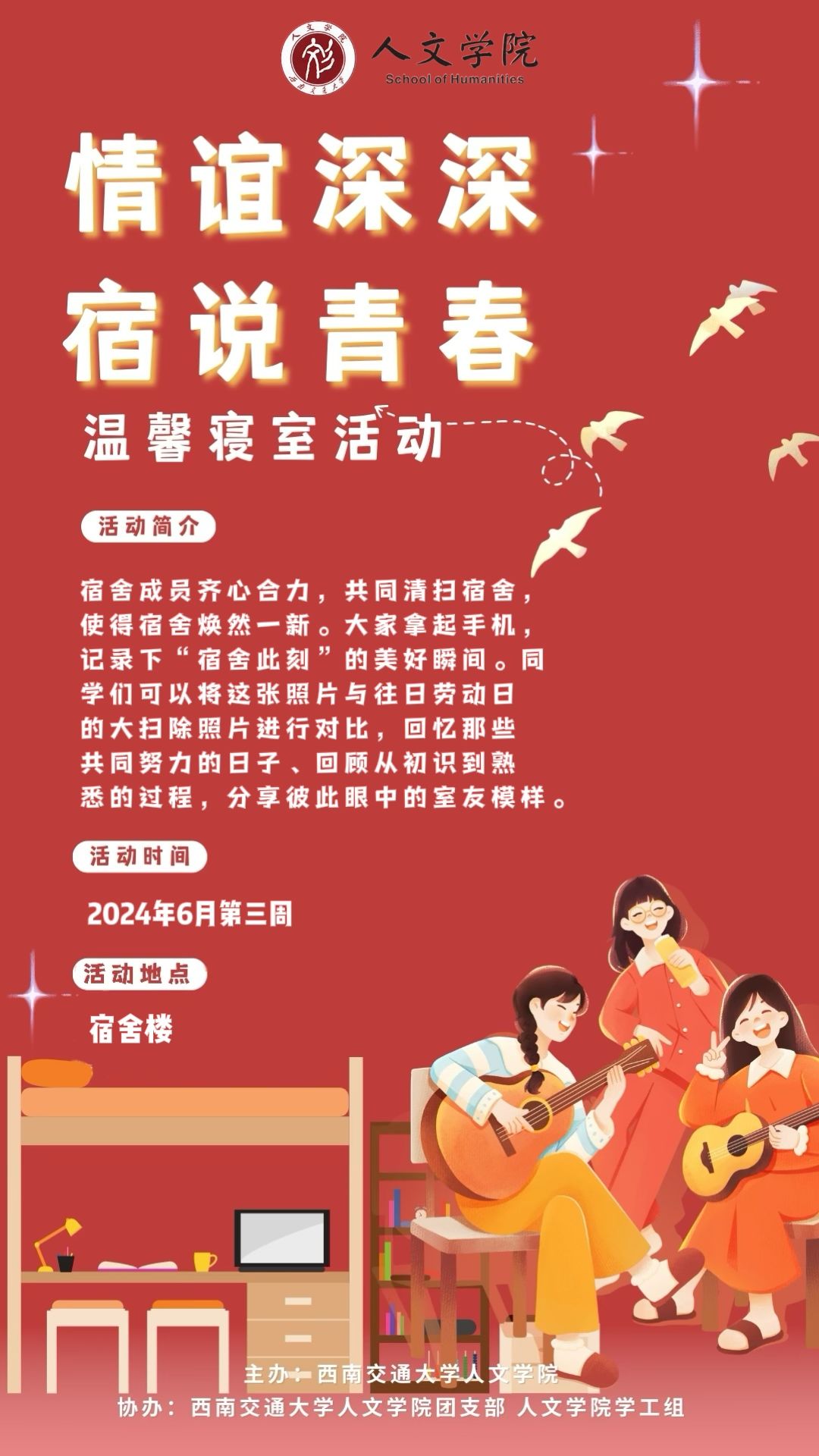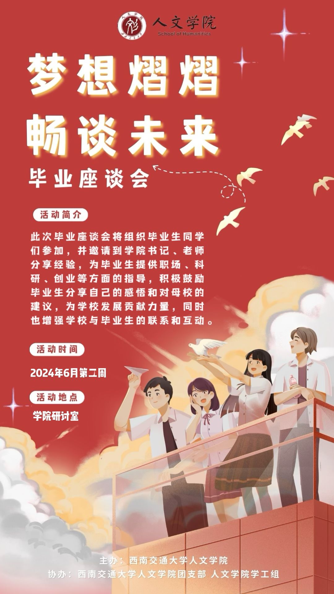 木槿昔年,浮生未歇,初夏时节,骊歌荡漾。忆往昔,你们怀揣梦想踏歌而来,现如今,你们学有所成,即将离别。回首过往,图书馆印下了你们孜孜不倦的身影,体育场上你们挥洒着顽强拼搏的汗水;大大小小的舞台上,显露出你们的天赋与努力、热情与才华;侧耳倾听,三号教学楼上回响着你们青春的誓言,犀安路上回荡着你们惬意轻盈的步履声;从青涩到成熟,从懵懂到稳重,交大校园的一草一木,一楼一宇都记录了你们拔节孕穗、化茧成蝶的成长过程。在毕业之际,我们真诚的向2024届全体毕业生发出以下倡议: