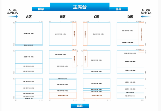 2、请全体毕业生从下沉广场正门进入,并于台阶上各班区域就坐,示意图如下: