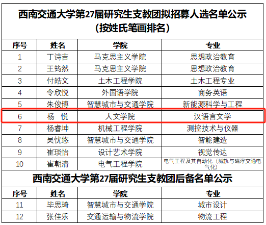 第27届研究生支教团招募人选(含后备),我院入选同学公示如下: