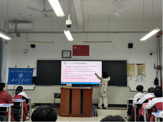 开幕式完毕,付老师和朱老师前往高三22班进行宣讲。朱老师首先以生动风趣的语言介绍了我校的百年办学历史、深厚文化底蕴和卓越的学术成就,着重阐述了我校在学科建设、师资力量、人才培养模式、科研成果以及校园文化等方面的优势与特色。通过一个个鲜活的学科案例、一项项前沿的学术研究、一批批杰出的校友事迹,全方位展示了我校丰富多彩的学术生态和充满活力的学习氛围,让同学们对各学院的专业设置和发展前景有了清晰直观的认识。付老师详细介绍了我校今年的招生政策、招生计划以及录取规则,并鼓励同学们积极报考,加入爱看影视