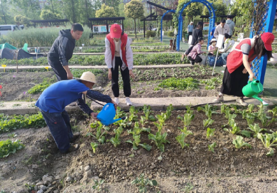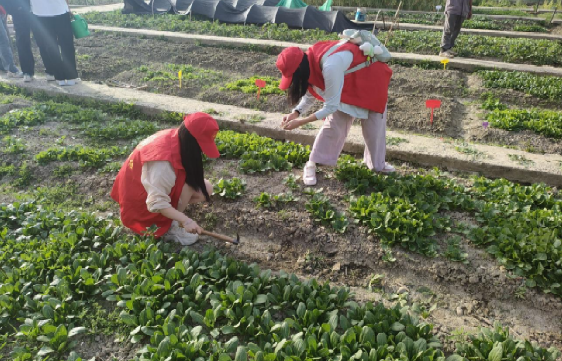 青年志愿者协会携手2024级新闻与传播专业1班团支部、2班团支部,于2025年4月15日17时,再度奔赴开心农场,开展以补苗、除草、浇水为主要任务的日常养护工作。