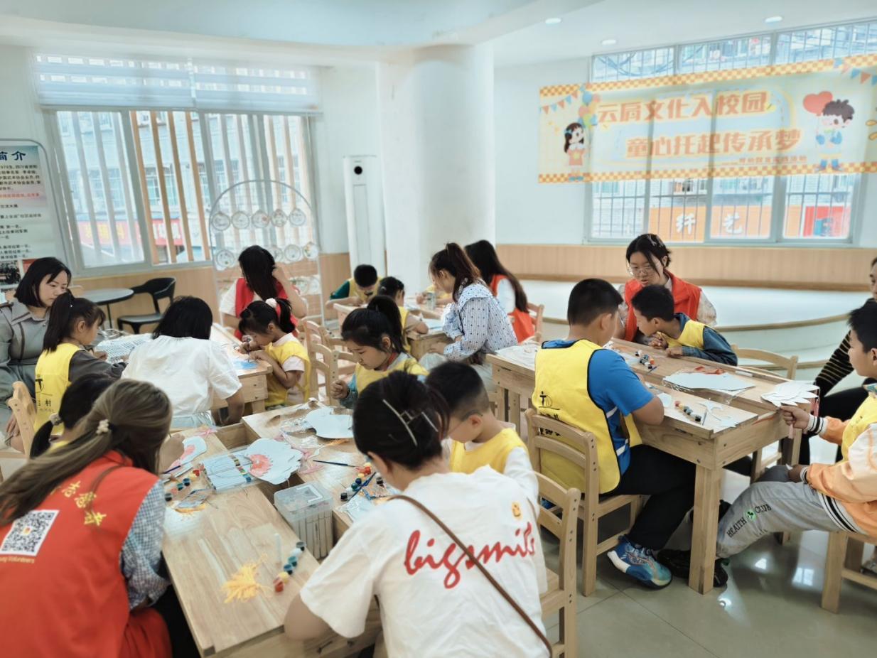 青年志愿者协会走进土地村,携手当地孩童共同开展“云肩焕彩——非遗手工艺传承雅集”活动。活动以传统服饰云肩为桥梁,连接亘古技艺与当代童心,现场氛围浓郁,尽显传统文化焕发生机之蓬勃气象。