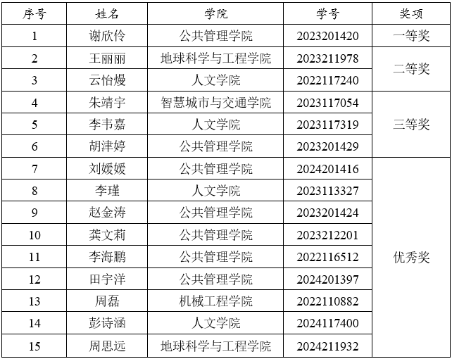 经初赛选拔、决赛模拟面试实战、评审小组评审,最终确定一等奖1名、二等奖2名、三等奖3名、优秀奖9名。现将获奖名单公示如下: