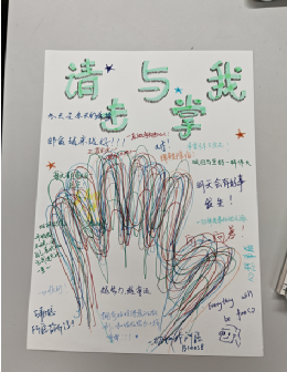 “请与我击掌”环节则将自我鼓励与群体联结巧妙融合。一张印有“请与我击掌”的硬卡纸在活动室内传递,同学们在纸上重叠绘制手掌轮廓,并写下专属心愿与鼓励话语——“一直做有韧性的人”、“每天都要变好一点”、“越努力越幸运”等字句饱含力量,“种”出了一棵满溢温暖的“手掌树”,成为同学们自我认同与彼此支持的生动见证。