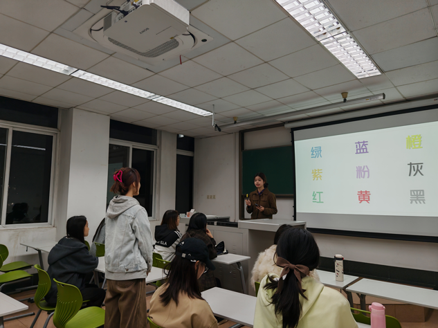 活动伊始,“看字说颜色”热场游戏迅速点燃现场氛围。当不同色彩书写的颜色名称交替呈现,参与者需快速反应说出字体颜色而非文字本身——当“蓝”字以绿色呈现时,准确回答“绿”才能通关。答错的同学通过回答心理小问题加深互动,不仅锻炼了大脑抑制习惯性思维的能力,更打破了彼此间的陌生感,让活动现场迅速升温。