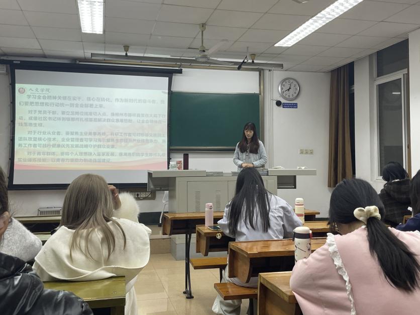 研究生会于九里校区J4321教室举办主题为“深学全会精神 勇担时代使命——党的二十届四中全会精神学习领读”的思想政治学习会,本次学习由赖秋蕊同学主讲,爱看影视