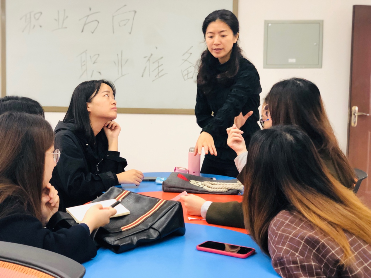 紧接着,围绕“如何了解就业方向”、“如何进行职业准备“、”如何提升面试技巧“等七个问题,与会学生以小组形式进行自由研讨并推举小组代表发言。其中,古典文献学方向的赵旭旭同学就“如何了解专业就业方向问题”,从请教学姐、在线求职网站等4个不同方向分享了小组的观点;汉语国际教育的秦冕同学结合自身小学教师工作经历就”女生如何解决就业歧视问题“进行了细致真实的分享。小组的讨论与分享,让同学们在确立求职目标、探索求职方向、提升求职技能等方面收获了形式多样且行之有效的就业经验和就业技能。