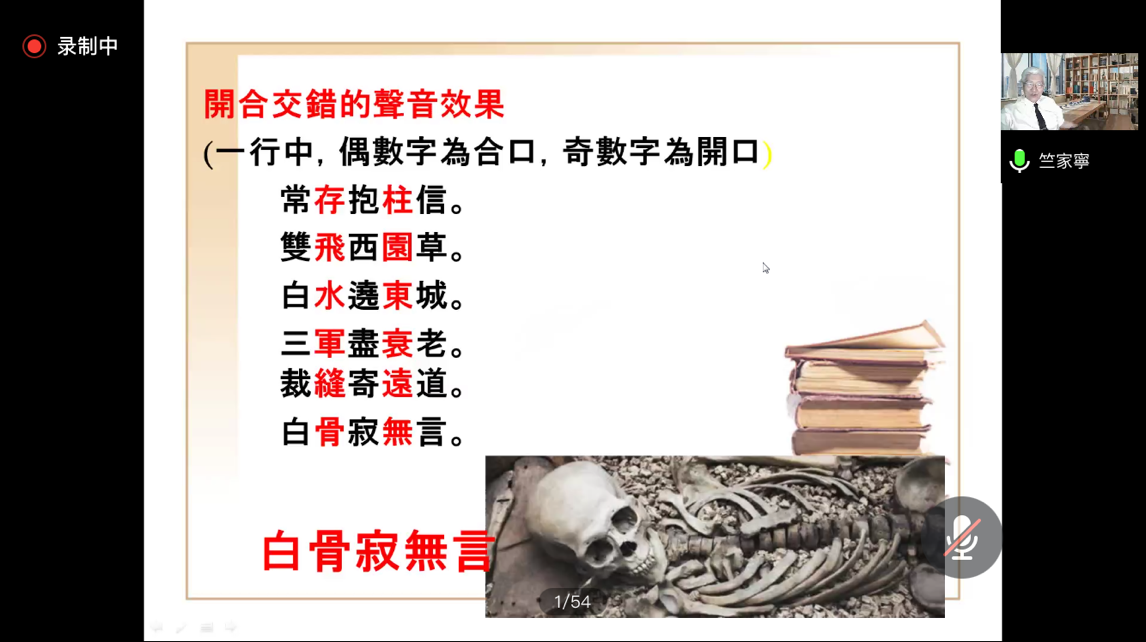 随后,竺家宁教授又从“声韵学知识与历史典故”、“声韵学与文学欣赏”等多方面,为我们带来了一场精彩的声韵学之旅。竺教授强调,声韵学就在我们身边,它是一门应用的知识,把“知其然”化作“知其所以然”。讲座最后,竺教授再次呼吁现代知识分子,要学会活用声韵学,扩大我们的文学视野。