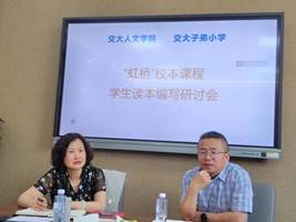 党委委员、中文教师党支部书记吴德利老师的带领下,来到西南交大子弟小学,与小学校长王利琨、小学直属党支部副书记马群等校领导老师开展“虹桥”校本课程学生读本编写研讨会。
