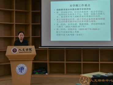 本科教学工作进行安排部署,并对本学期的工作重点进行了强调。本学期本科教学最重要的工作是要全力以赴迎接教育部本科教育教学审核评估 ,着力建设学院本科教学的质量保障能力及本科教育教学综合改革举措与成效。同时,学院要继续推进国家一流专业及一流课程建设,积极组织教师参加学校第十一届青年教师讲课比赛,让青年教师们在比赛中学习切磋,不断总结好的教学方法及教学经验,提升人才培养质量。