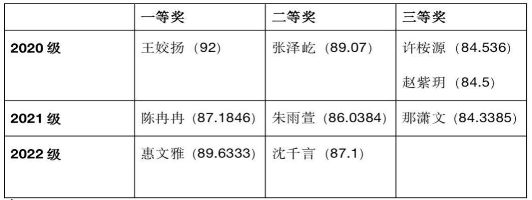此外,为奖励专业成绩优秀的同学,叶浩音乐人才培养专项基金规定每学年音乐表演专业(包括钢琴、器乐及声乐三个方向)的本科生(入学满1年),若在该学年内没有无故缺勤和挂科补考的情况,且专业主修课成绩每次在90分以上,符合以上条件的学生按一学年内所修音乐专业主修课程➕专业实践及理论等课程总成绩平均分排名,可申请一等奖1000元、二等奖800元、三等奖600元不等的奖学金。经过学生自主申请、班级审核、系上审核等环节,2022-2023年度奖学金获得者名单公示如下: