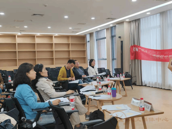 竞赛进行到最后环节,音乐系丁旭阳老师、中文系董首一老师、传播系张诗婷老师陆续上场。丁老师带来了《合唱体验与艺术实践》,他通过合唱声部的介绍、呼吸的训练以及节奏与和声的训练进行讲解。董老师的参赛题目则是《<老人与海>中的硬汉精神》,在讲授过程中,董老师与在场评委进行了深入的互动与交流,现场气氛活跃。张老师结合实例对《数据与统计分析》这门课进行了生动的讲解和阐释。