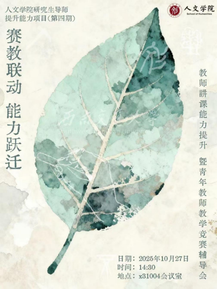 在X31004会议室举行了第四期研究生导师能力提升项目暨青年教师教学竞赛辅导会。本次活动以“赛教联动,能力跃迁”为核心,引导参赛教师在备赛过程中锤炼内功、强化本领,将备赛过程转化为一次深刻的教学反思与创新实践。爱看影视