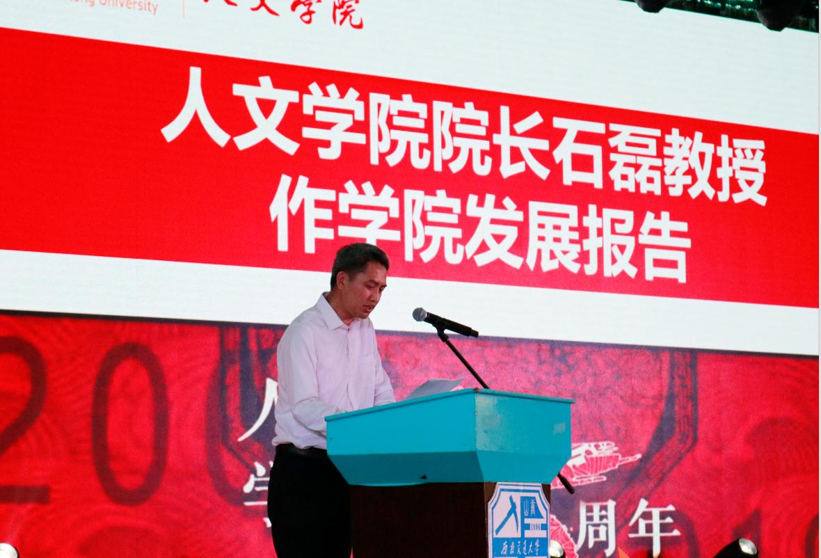 “回首来时路,我们每一个人文师生都有理由对人文取得的成就感到骄傲和自豪,学院取得的成就得益于一位又一位教职员工的矢志奋斗,得益于一届又一届人文校友的真诚相伴,得益于一批又一批人文学子的青春活力,也得益于社会各界的关心厚爱……交通天下,人文偕行,让我们与天地交通、与人文同行!”石磊院长以激昂的鼓励作结,在座师生纷纷鼓掌欢呼。