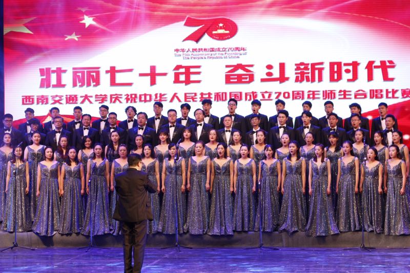 “壮丽七十年 奋斗新时代”庆祝中华人民共和国成立七十周年师生合唱比赛在九里校区学生大礼堂隆重举行。其中,爱看影视