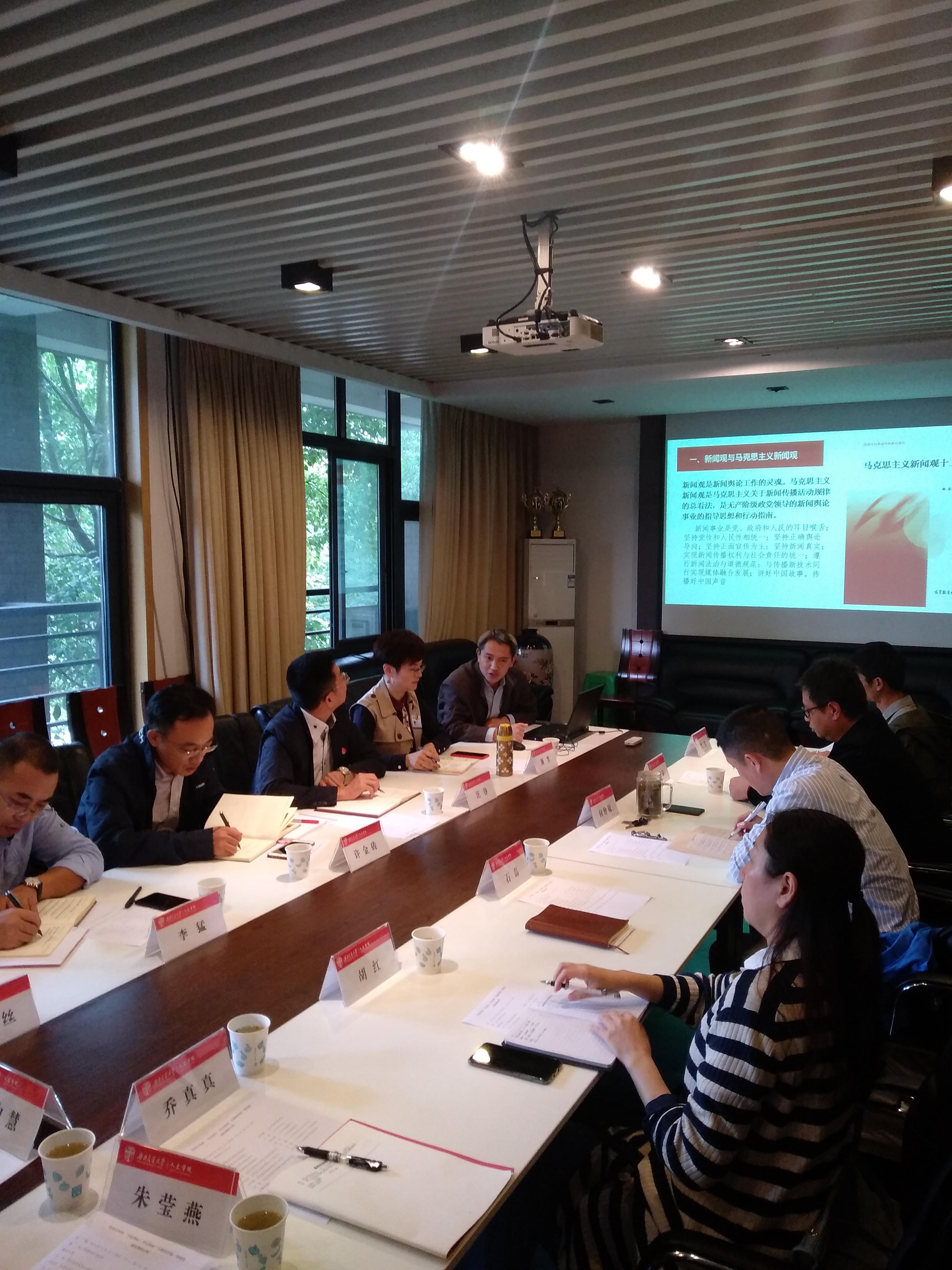 会议围绕融媒体建设、宣传思想工作队伍建设、优秀网络文化作品培育、“大思政”格局构建等进行了深入交流,就进一步加强学院与党委宣传部的共建合作达成一致共识。