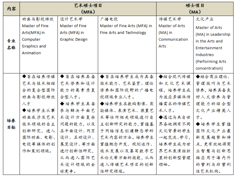 以上专业由中国传媒大学(CUC)和美国纽约理工学院(NYIT)合作举办,依托中国传媒大学及传媒高等教育国际联盟的优质资源,采用国际化传媒精英人才创新培养模式,授予美国纽约理工的硕士(或艺术硕士)研究生专业学位。
