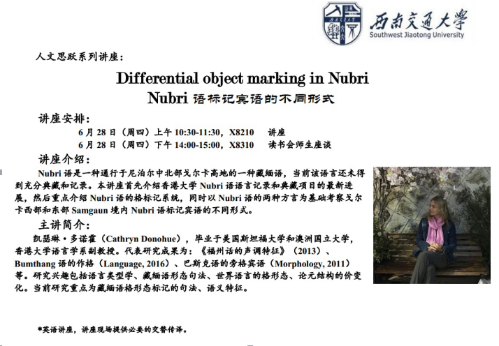 [人文思跃系列讲座二十六]Differential object marking in Nubri(Nubri语标记宾语的不同形式)