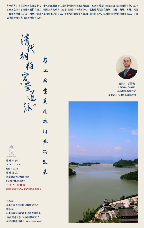 讲座题目:清代桐柏宫“崇道派”与江南全真道龙门派的发展