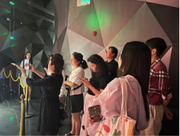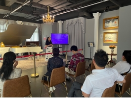 成都芯智慧音乐博物馆位于成都市双流区芯谷产业园区,占地面积近8000平方米。它融汇音乐艺术与现代科技精华的新型文化地标,馆内收藏有来自世界各国的古董钢琴及其他古董乐器300余件。作为国内乃至全球音乐科技创新的重要窗口,场馆打破静态展示的传统模式,大量运用程序互动、3D影像、全息剧场、数字场景还原等前沿科技手段,赋予音乐故事以鲜活的生命力。这些创新展示方式既增强了音乐教学的感性认知,又实现了艺术表达的具象化,有效促进了音乐系本次教研活动的深入开展。