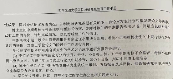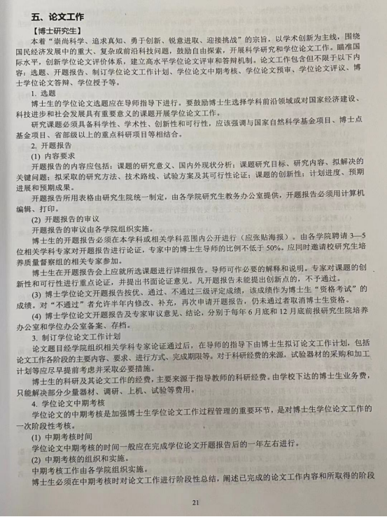 研究生培养方案总则》中“论文工作”这一部分截图如下,请同学们在准备充分的情况下,申请开题报告或者中期检查,“不通过”者皆按照学校文件办理。