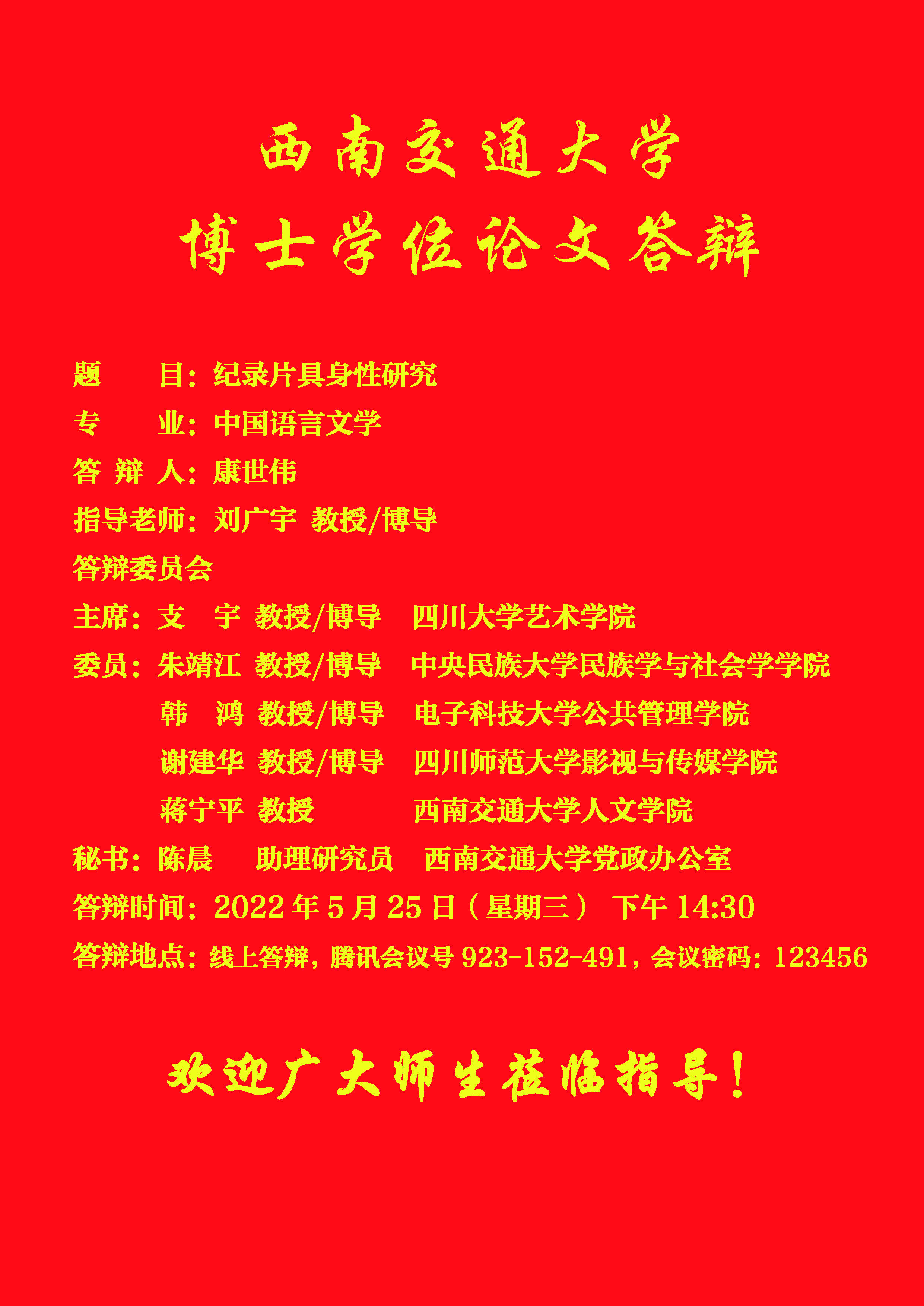 【博士答辩】爱看影视 博士研究生学位论文答辩海报