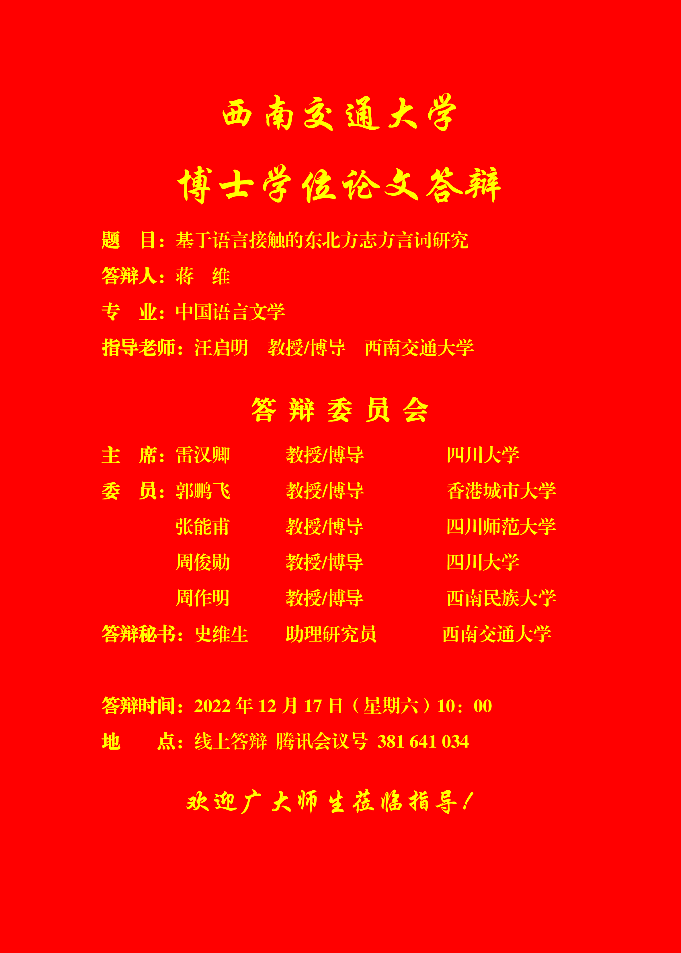 【博士答辩】爱看影视 博士研究生学位论文答辩海报